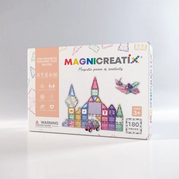 Klocki magnetyczne z ALFABETEM I LICZBAMI STEAM PASTEL 180 el. MAGNICREATIX