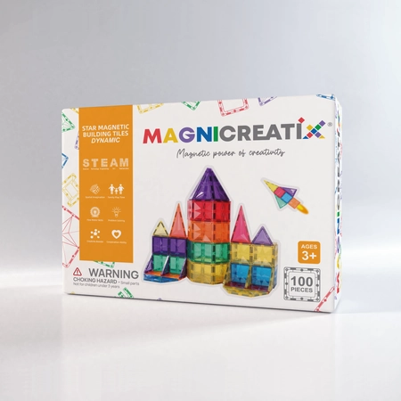 - Zestaw MAGNICREATIX DYNAMIC 100 el. to idealny start z klockami magnetycznymi 3D. Rozwija kreatywność, logiczne myślenie i wspiera naukę STEAM. Dla dzieci od 3 lat.
