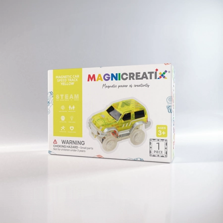 - Masz już tor wyścigowy MAGNICREATIX? Dodaj jeszcze więcej emocji do wyścigu, dołączając dodatkowy samochód! Auto dostępne jest w czterech dynamicznych kolorach: czerwonym, zielonym, żółtym i niebieskim, pasując idealnie do torów MAGNICREATIX SPEED TRACK.